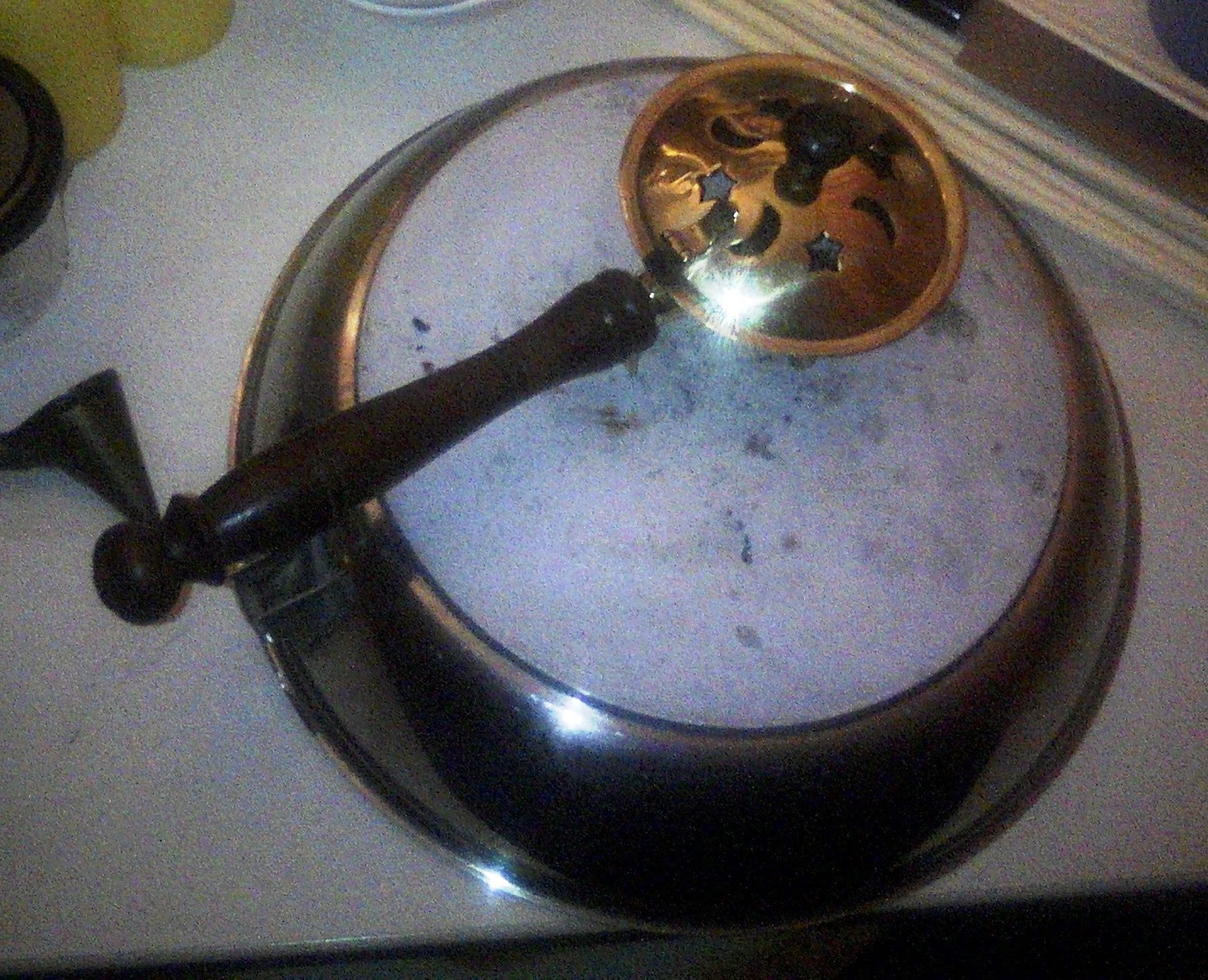 Dann sprengt man mit dem Dolch einige Tropfen über den Altar mit den Worten: